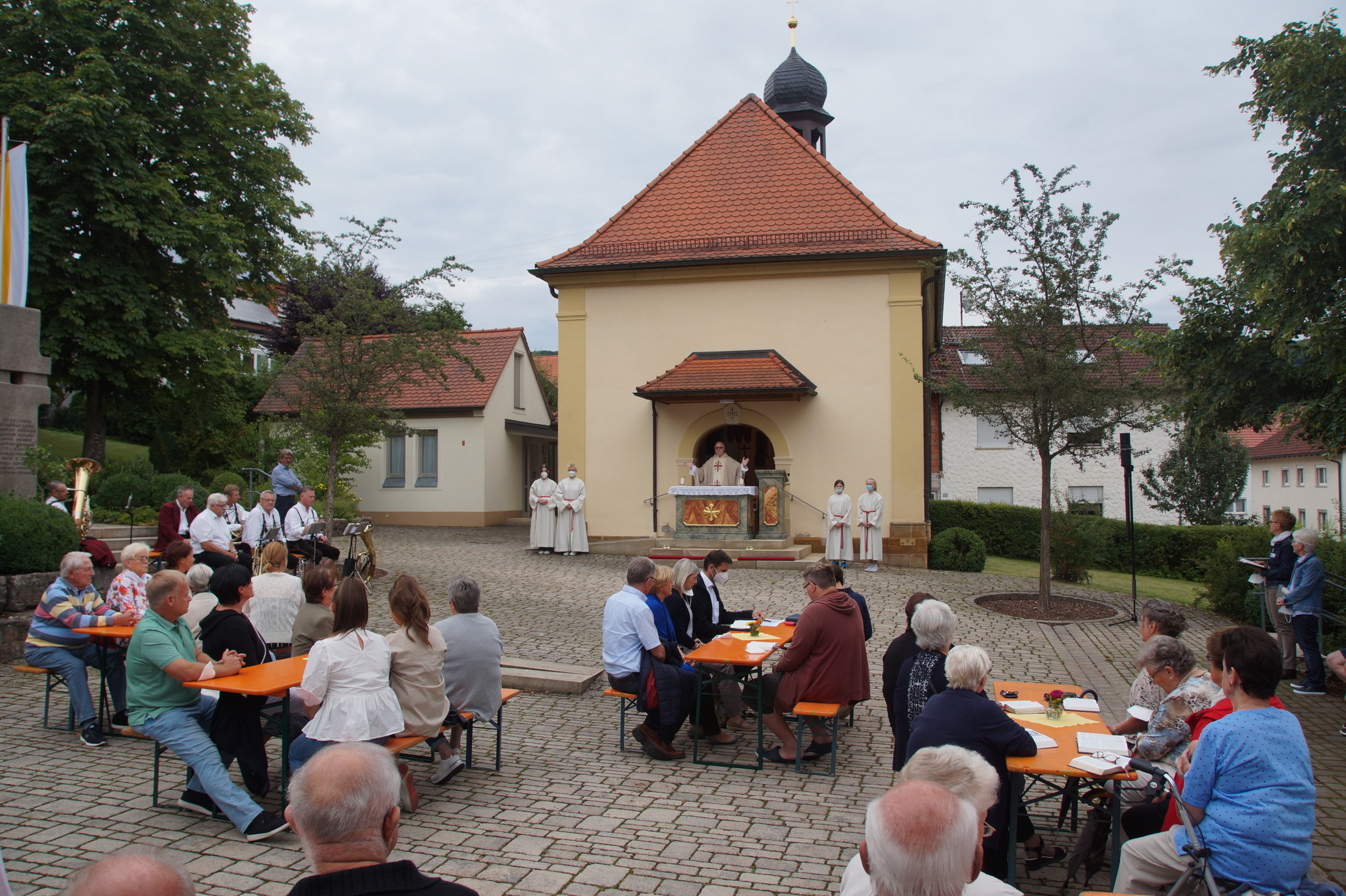 Pfarrer i.R. Georg Lohneiß zelebrierte auf dem Kirchenvorplatz die Heilige Messe, zu der zahlreiche Melkendorfer gekommen waren.